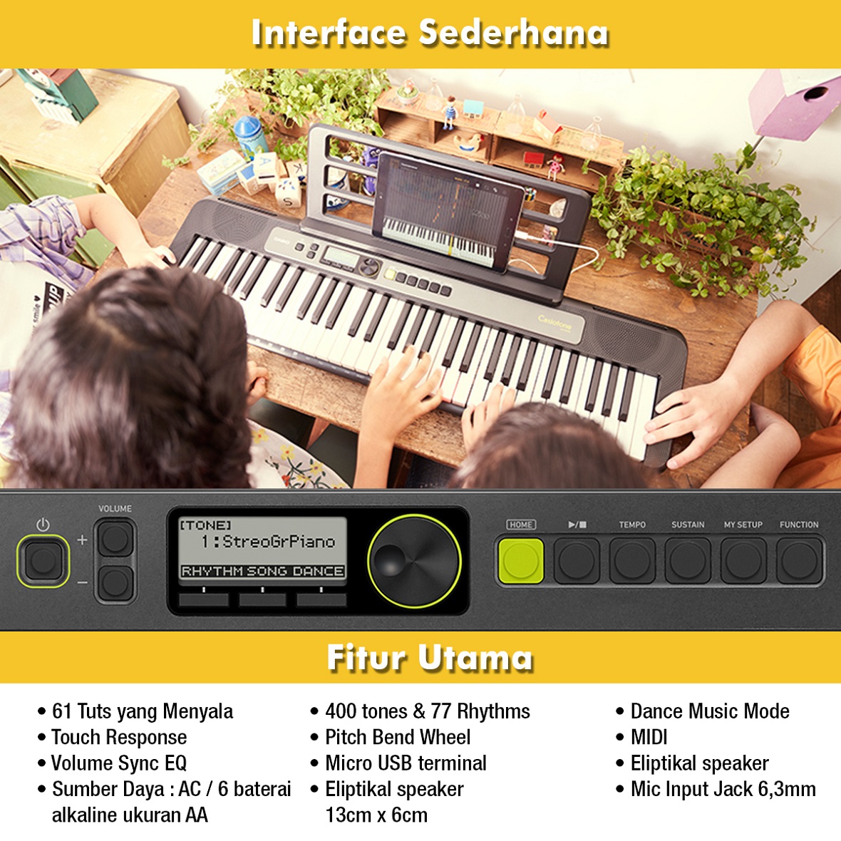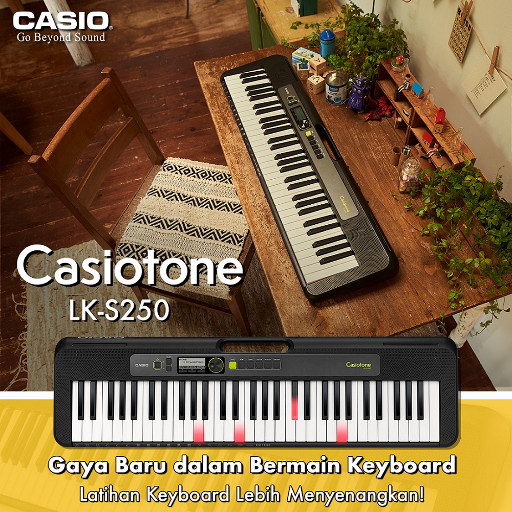 Belajar keyboard lebih menyenangkan bersama CASIO LK-S250. Fitur tuts menyala yang dimiiliki keyboard portabel ini sangat membantu membantu dalam menunjukan not mana yang harus dimainkan sehingga latihan akan jauh lebih efektif dan efisien. Pilih lagu favorit Anda untuk berlatih dengan koneksi ke aplikasi Chordana Play yang teresidia gratis untuk perangakat iOS & Android.